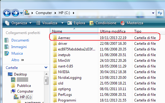 1) Nella cartella principale del disco (C:) è presente una cartella denominata Aermec (che ovviamente non è stata creata volontariamente dall’utente):
